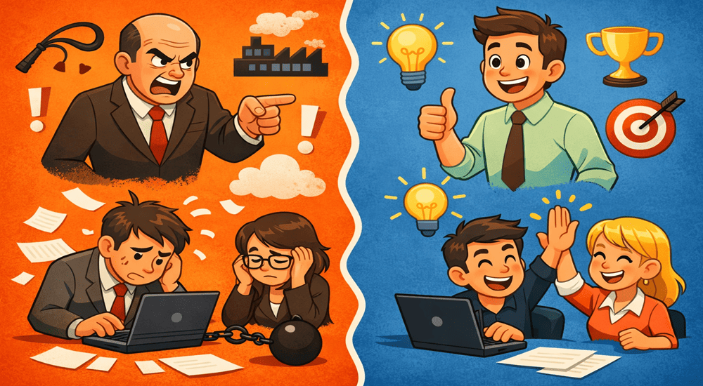 | Motivation | External rewards and punishments | Intrinsic motivators like trust, growth and purpose |